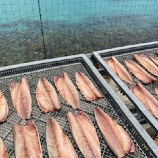 ※海の上にせり出した櫓で晴れた日に4時間ほど天日干ししていますので、「一夜干し」ではございません。