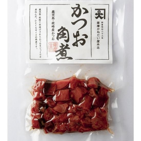 かつお角煮:かつお(鹿児島県産)、水飴、砂糖、醤油(大豆・小麦を含む)、みりん、生姜、寒天