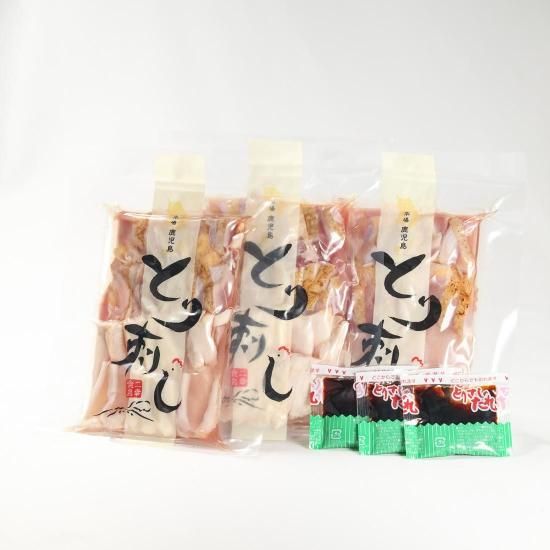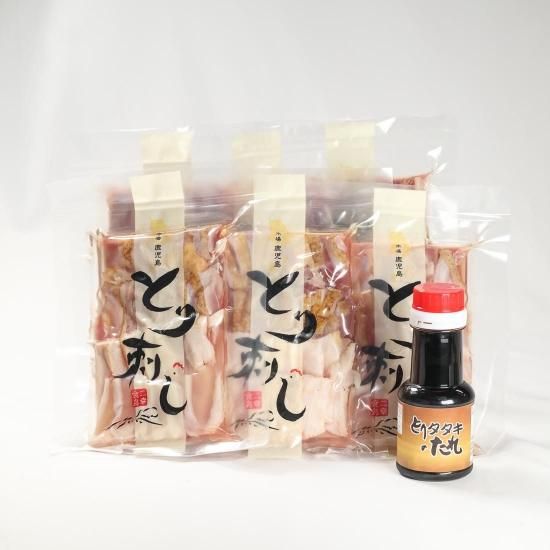 | 内容量 | とり刺し100g×10P(真空・凍結)/たたきのたれ110ml×2本(ボトル) とり刺し100g×6P(真空・凍結)/たたきのたれ110ml×1本(ボトル) とり刺し100g×3P(真空・凍結)/たたきのたれ(小袋)3パック |