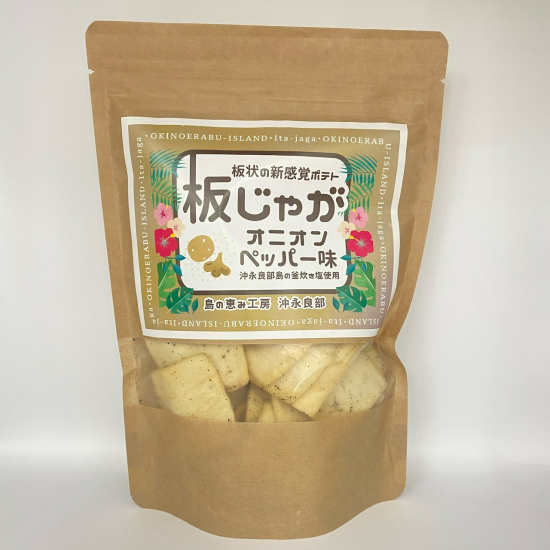 | 原材料 | 【塩味】 小麦粉(国内製造)、ジャガイモ(沖永良部産。分別生産流通管理済み)、米油、食塩(沖永良部産)/膨張剤、調味料(アミノ酸等)、(一部に小麦を含む) 【オニオンペッパー味】 小麦粉(国内製造)、ジャガイモ(沖永良部産。分別生産流通管理済み)、米油、食塩(沖永良部産)ブラックペッパー、オニオンパウダー/膨張剤、調味料(アミノ酸等)、(一部に小麦を含む) 【アンチョビガーリック味】 小麦粉(国内製造)、ジャガイモ(沖永良部産。分別生産流通管理済み)、米油、シーズニング(デキストリン、アンチョビペースト、その他、岩塩、パン粉、粉末魚醤、ガーリック、麦芽糖、でん粉、パセリ、ローズマリー、胡椒、唐辛子、食塩(沖永良部産)/膨張剤、調味料(アミノ酸等)、リン酸Na、香料、香辛料抽出物(一部に小麦・大豆を含む) |