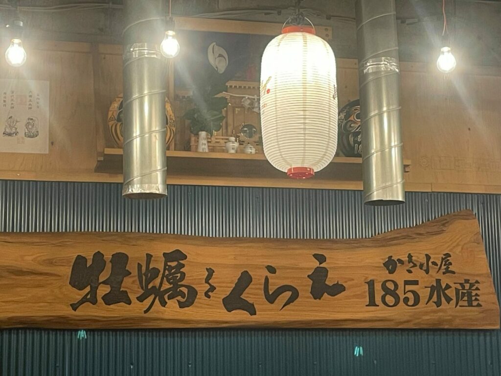 入口入って左側に「牡蠣をくらえ」の文字が!