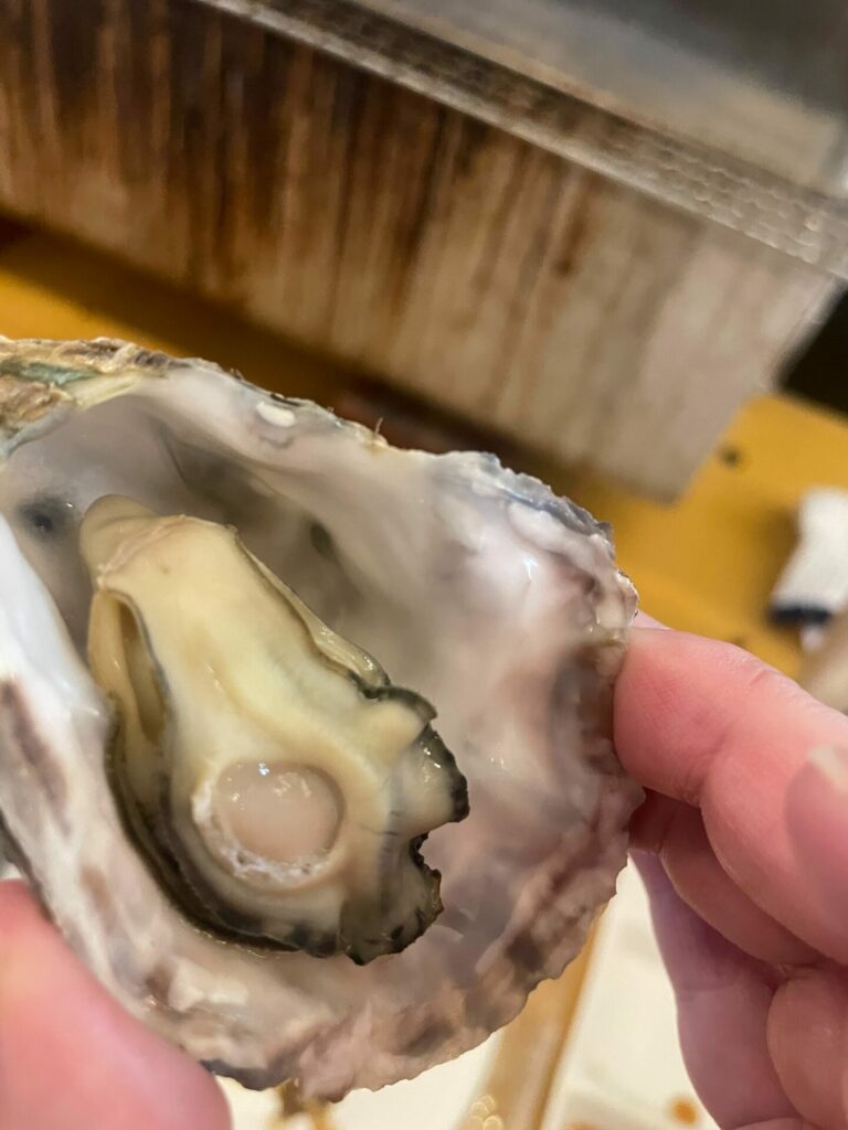 殻をむくと大きな身がプリッと出てきます! 焼いてもよし、生でそのまま食べてもよし、カキフライにしてもよし! クリーミーで食べごたえのあるこの岩牡蠣はまさに海のミルク!という感じです!