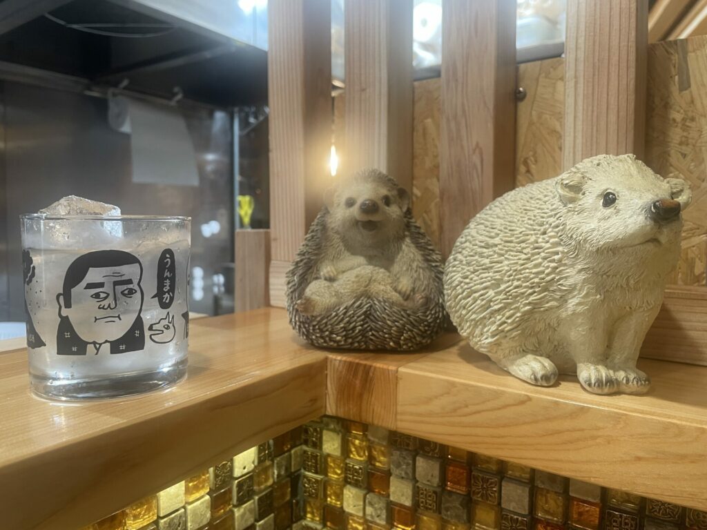 店内は立ち飲みスタイルで端っこにハリネズミがいます。