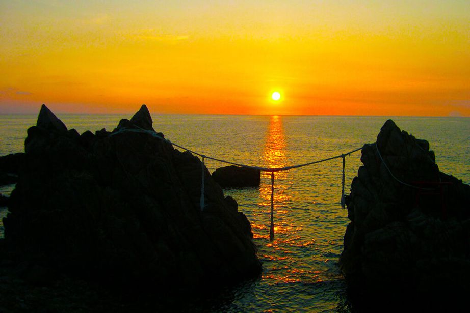 嵐の夜に海に投げ出された夫婦が、岩に姿を変えたという伝説が残る夫婦岩です。