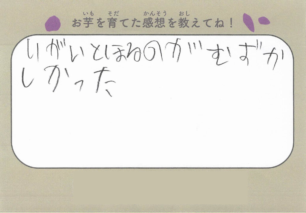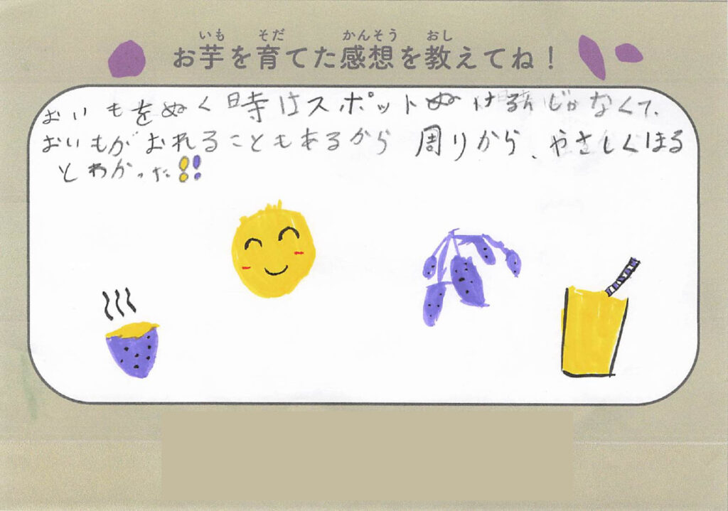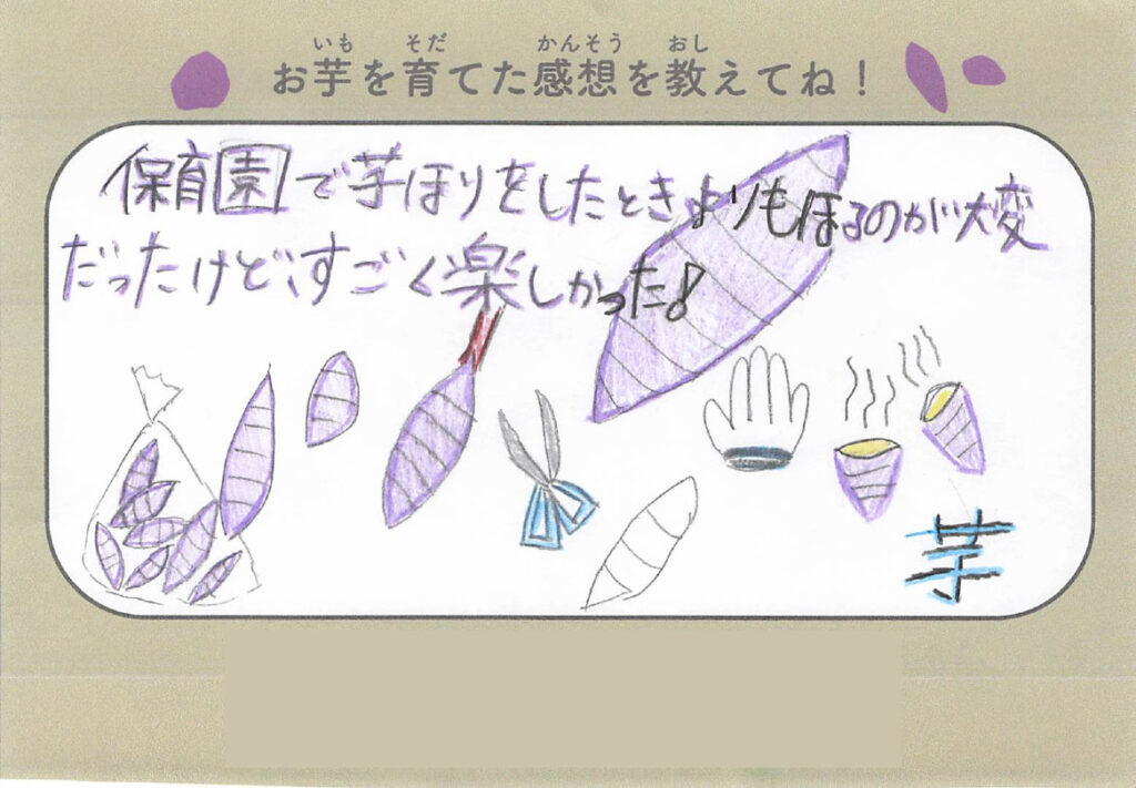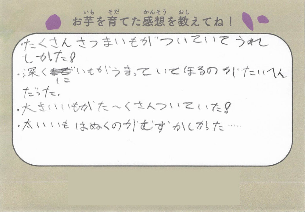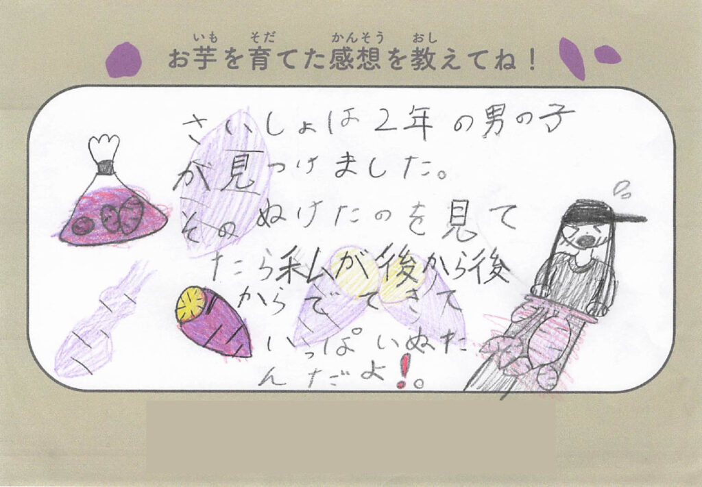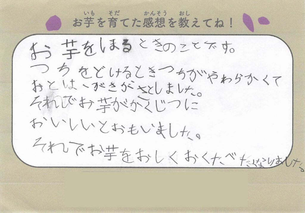 今回、芋掘りでは子どもたちから感想文も書いてもらいましたのでご紹介します!