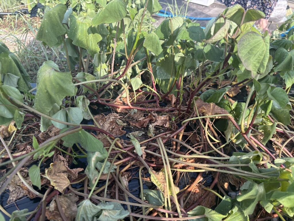 そして迎えた秋。5月に植えた苗が立派に育ち、ツルが黄金色に変わりはじめた頃、いよいよ収穫です!