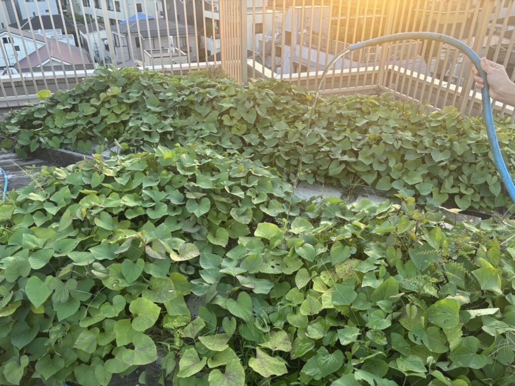 都内の学童の屋上に、前回人気だった「べにはるか」の苗を植えました。